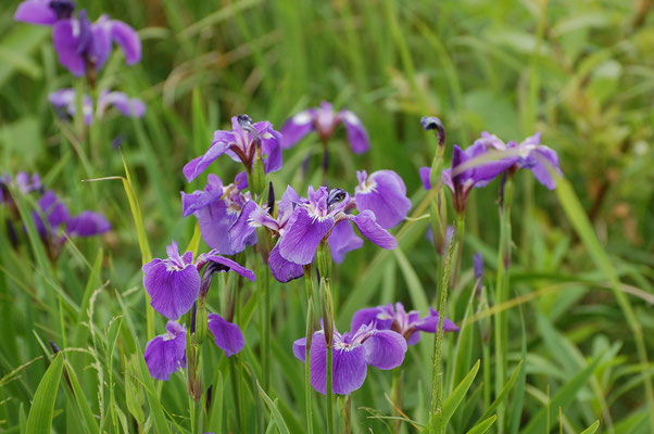 schnell wieder ins Auto samt Mücken. Zum Wasserflugplatz, laut, aber sehr interessant mit den klaren Seen, die kleinen Flugzeuge starten und landen. Blühende Iris.