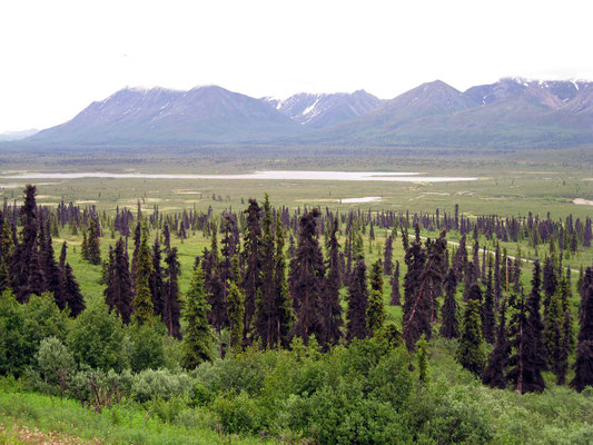 Am Tolsona Campground vorbei, vor zwei Tagen standen wir hier im nassen Grün. Nun beginnt Neuland auf dem Glennallen HWY Richtung